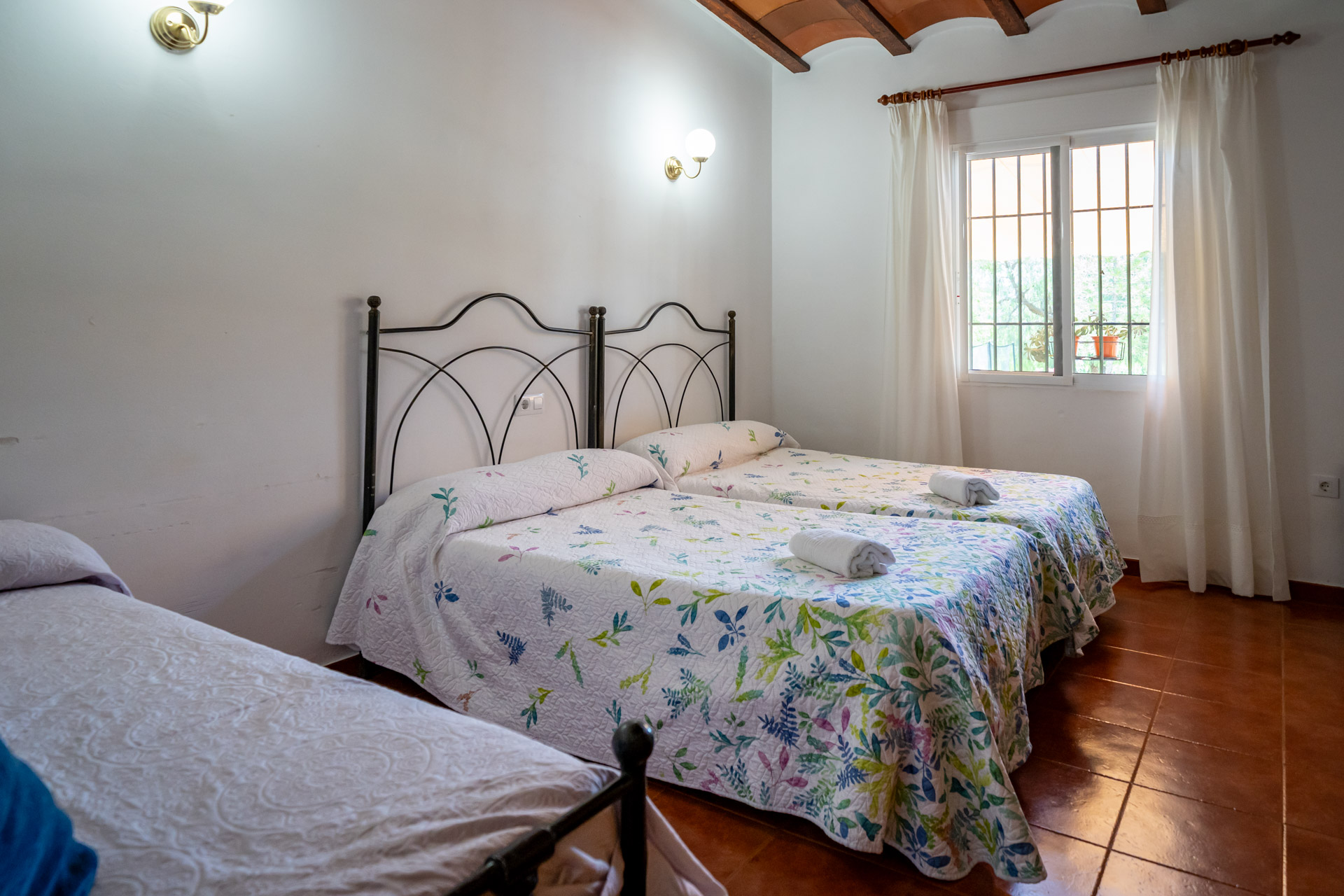 - Cama de matrimonio (150 cm), cama de matrimonio (135 cm), dos camas individuales (105 cm) y dos camas individuales (90 cm)
