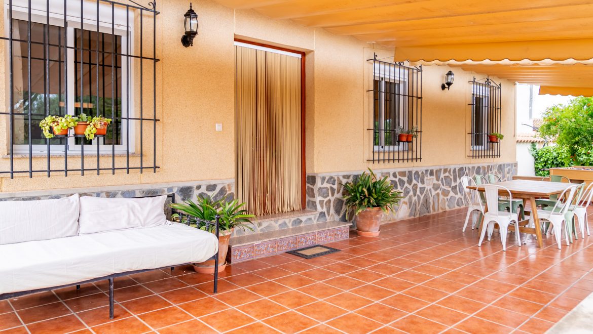 Terraza cubierta con muebles de exterior