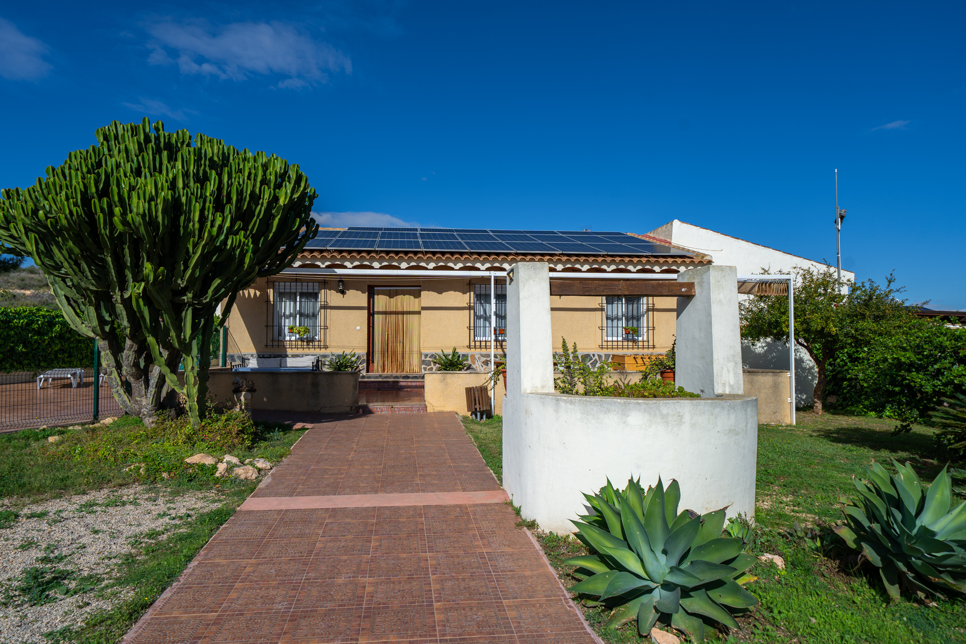 - Barbacoa con encimera, fregador, sombrilla, iluminación y punto de luz
