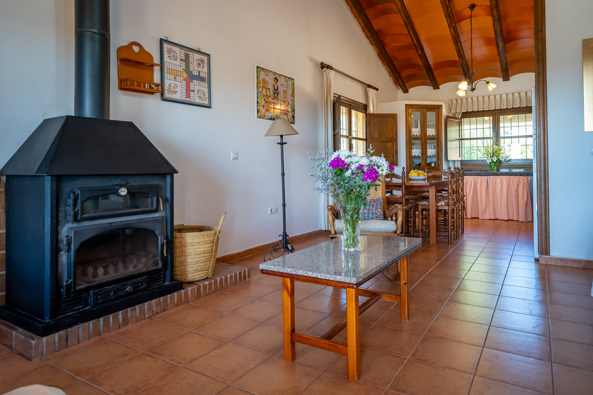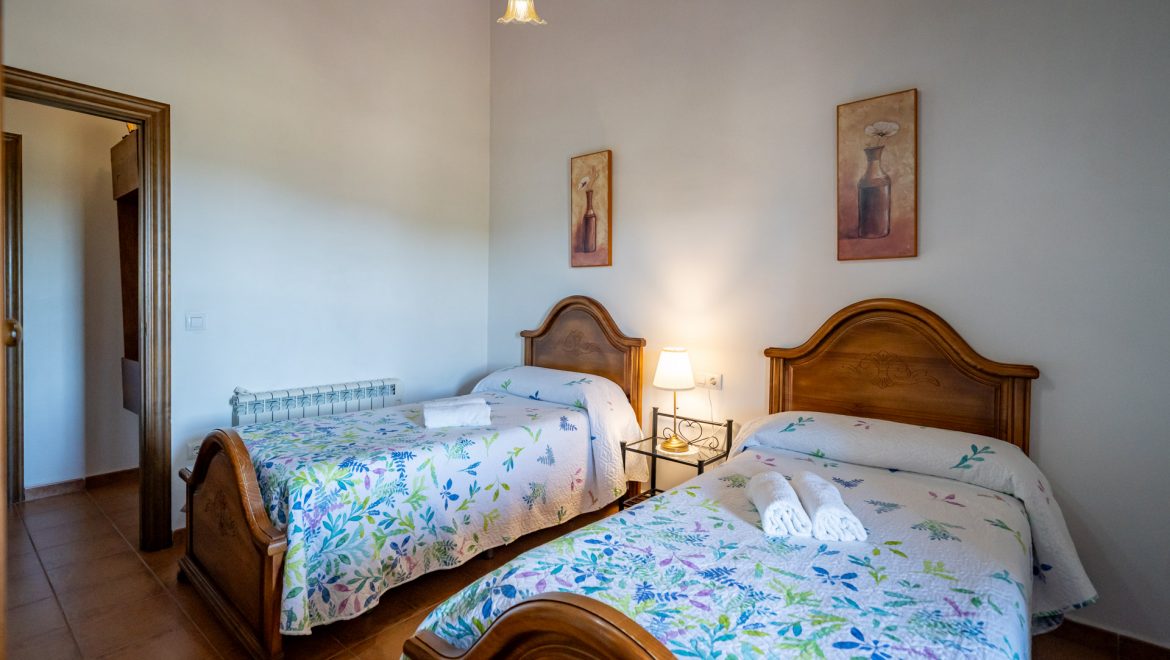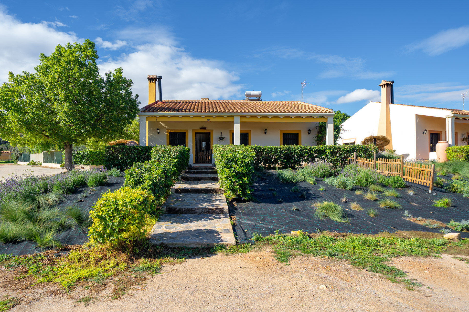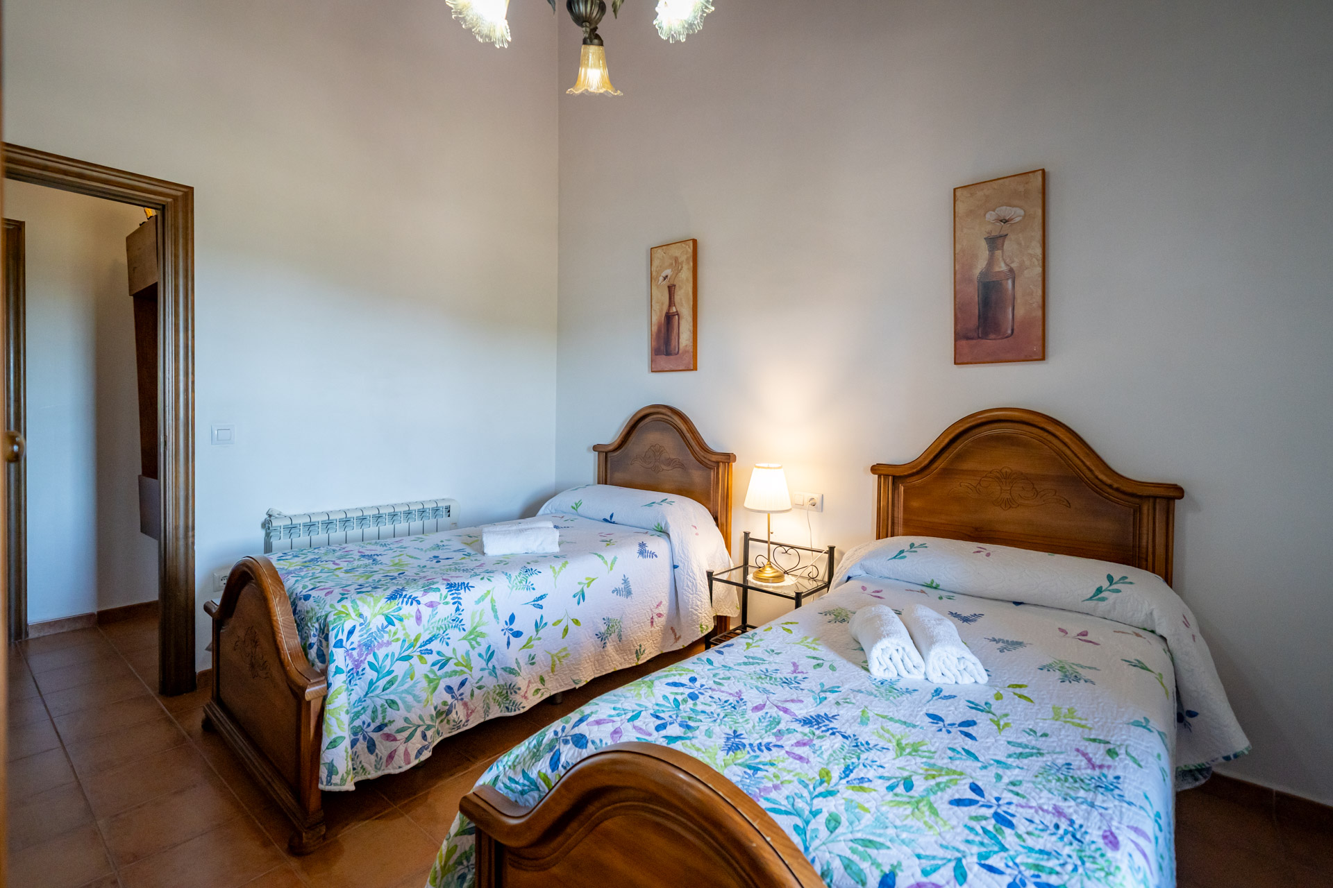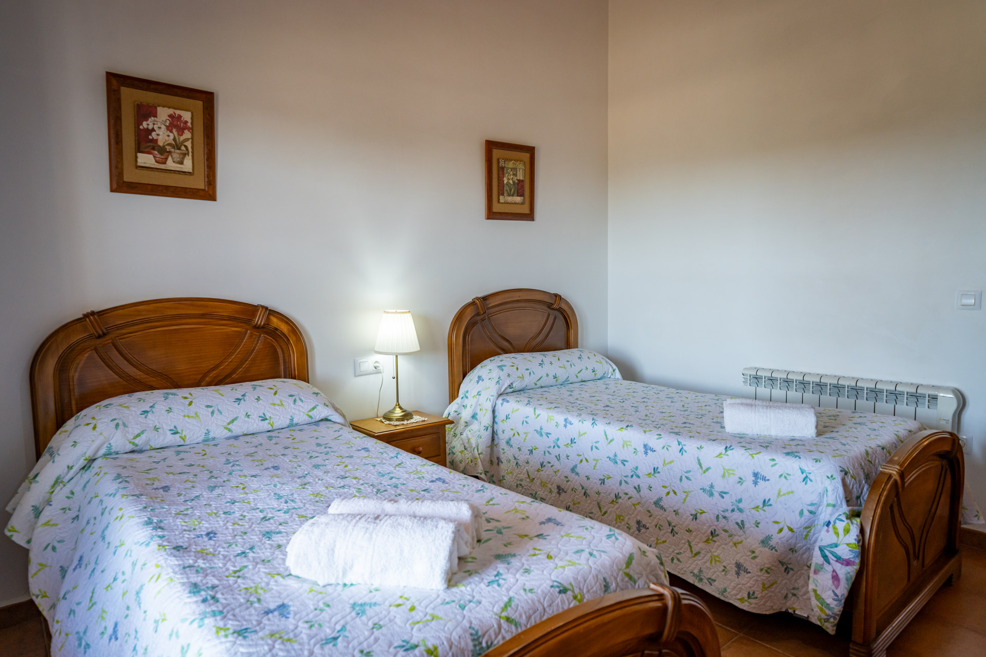 Tiene un amplio salón unido a la cocina, un dormitorio de matrimonio y dos dormitorios dobles con muebles de madera y forja, dos baños con ducha y bañera respectivamente, una terraza cubierta con muebles de jardín y junto a ella una zona ajardinada donde se encuentra la barbacoa. La casa está adaptada para personas con discapacidad.