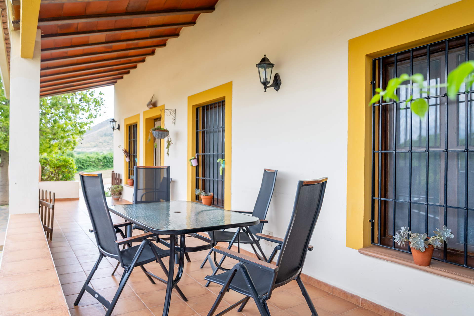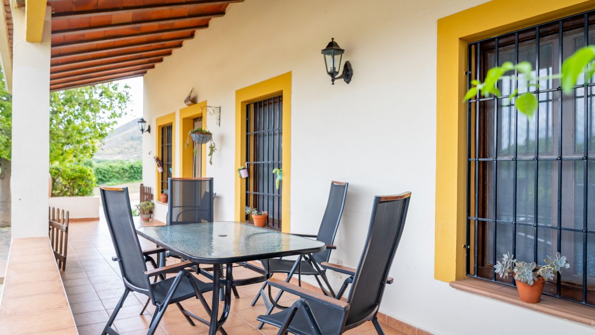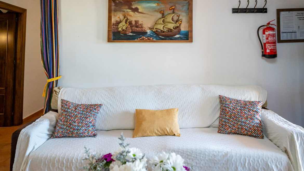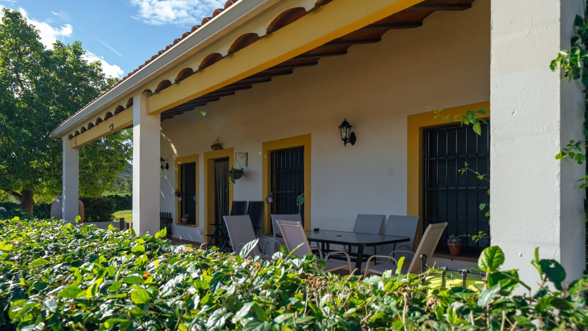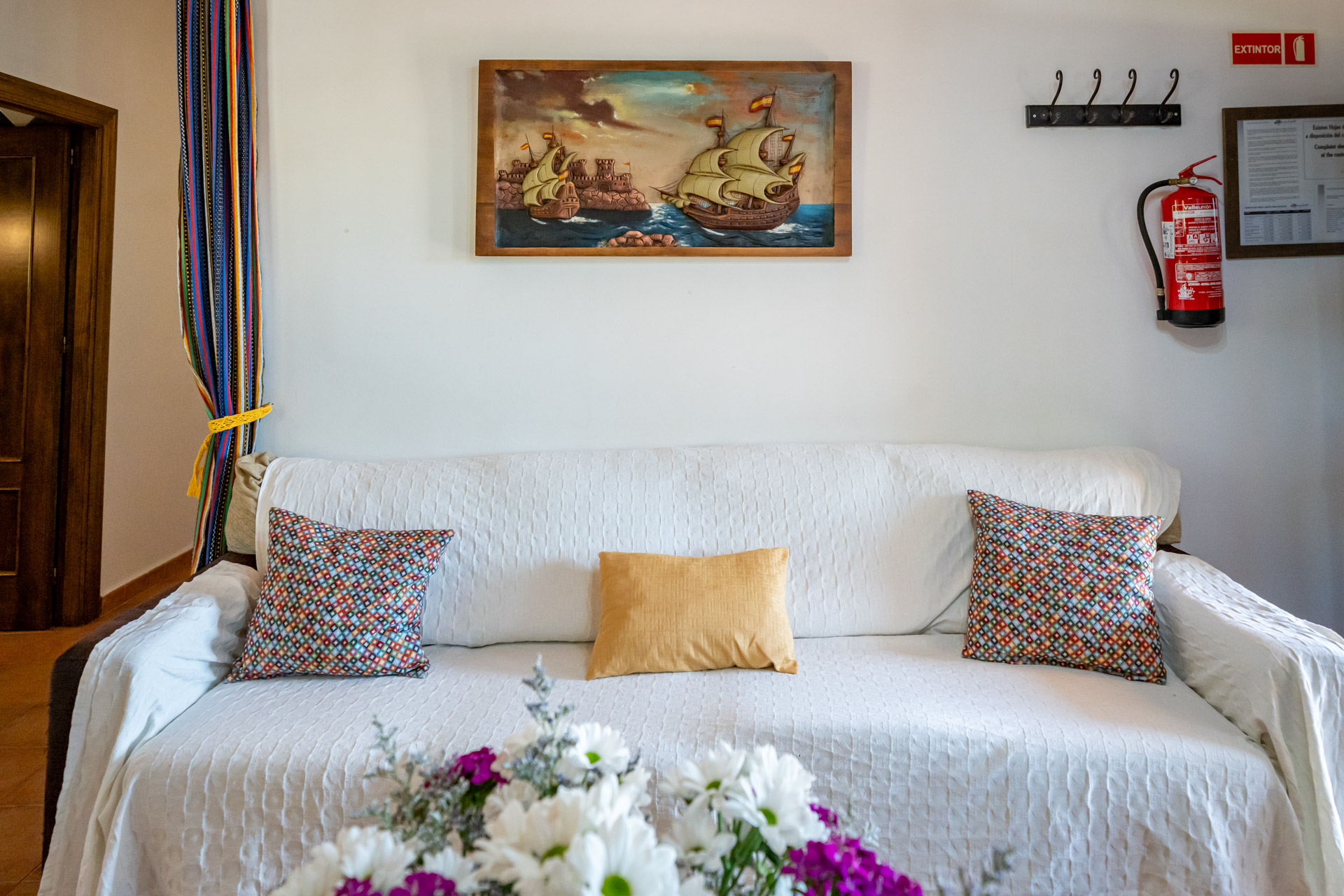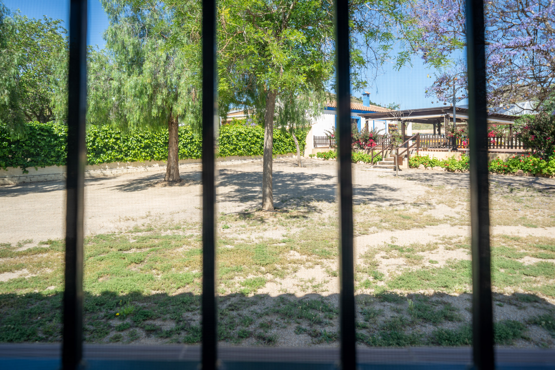 Tiene un amplio salón unido a la cocina, un dormitorio de matrimonio y dos dormitorios dobles con muebles de madera y forja, dos baños con ducha y bañera respectivamente, una terraza cubierta con muebles de jardín y junto a ella una zona ajardinada donde se encuentra la barbacoa. La casa está adaptada para personas con discapacidad.