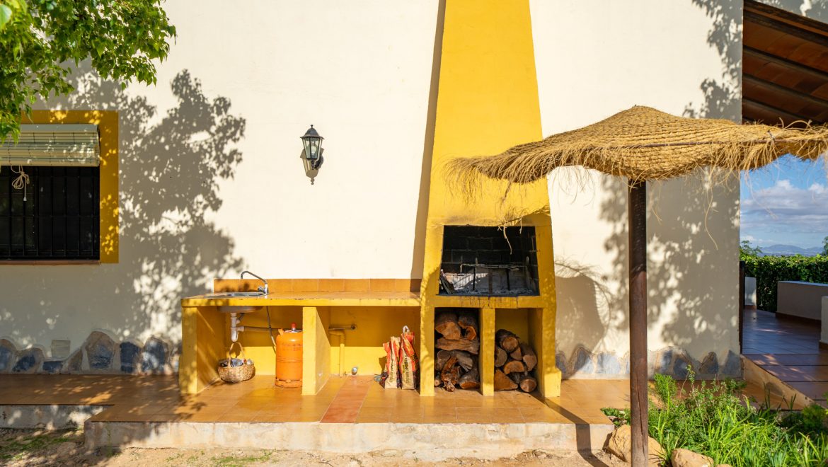 • Barbacoa con encimera, fregador, sombrilla, iluminación y punto de luz